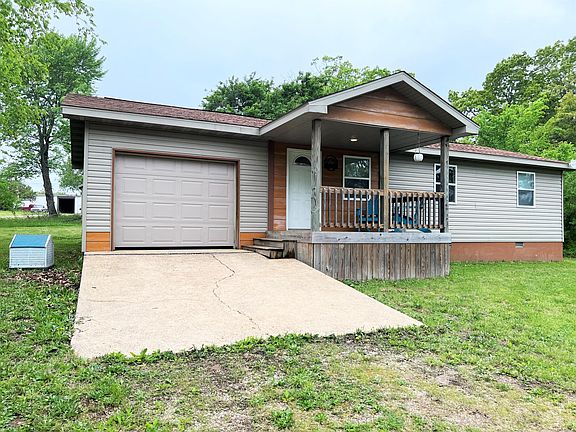 Cozy 3 bedroom, 1 1/2 bath with hardwood flooring in the living area and one bedroom. Covered front deck, and large yard with a single attached garage. All located in a charming Ozark town close to the national forest, and rivers. Updated in 2019 and includes appliances; stove, refrigerator and dishwasher.