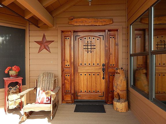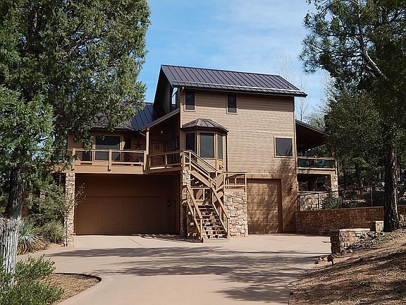 - Exterior Features: Covered Porch/Deck, Tall Pines on Lot, Storage/Utility Shed, Porch/Deck, Landscaped, In the Trees, View of Mountains, Patio, Dog Run, Drip System, RV Hookup