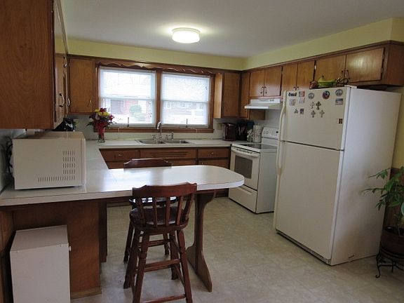 Great brick ranch home with 3 bedrooms and 1 and a half baths! This home is spotless. Enter the property conveniently through the door leading from the carport, saving steps or being sheltered from the weather. The living room has a bay window and gorgeous flooring. The dining and kitchen have newer flooring, lots of cabinets & counter space, a bar with 2 bar stools as well as a refrigerator and range/oven. The 3 nice size bedrooms and Hall bath(remodeled 5 yrs. ago) are all accessible from the hallway. The utility/laundry room is accessible to the half bath and the carport. Neutral color paint is throughout the home. All flooring is in great condition. The carport offers storage at the back. The large inviting back yard & patio will be great for entertaining! There is a nice large yard barn for storage. Excludes: washer, dryer, curtains, and draperies.Seller will pay for buyer's one year Cinch Home Warranty at closing! See Information Sheet for more Updates and ages.