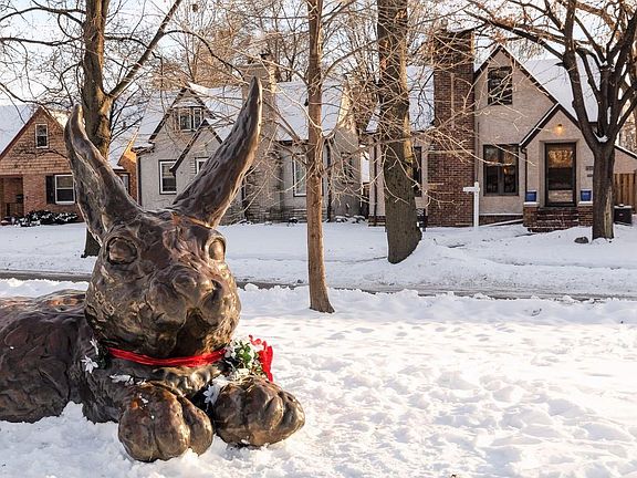 Landmark living on the Parkway at the Bunny House! Iconic sculpture "Cottontail on the Trail" right out your front windows! Sophisticated brick and stucco home with MAC Updates. 3 finished levels with plenty of spaces to distance. New roof, gutters, and skylight in 2019. Gas fireplace, high efficiency furnace & AC, beautifully appointed eat in kitchen, massive finished upper level, newer windows and a sliding glass door to a huge deck and private fenced yard, perfect for entertaining. Don't miss this incredible opportunity to have Minnehaha creek (and The Bunny) out your front door!