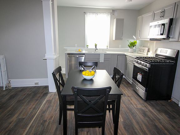 This 3-bedroom apartment is a beautiful unit in college town with major renovations including all new flooring, furnishings, and contemporary finishes. Enjoy modern amenities like in-unit laundry and stylish new lighting fixtures. The updated kitchen features quartz countertops and new stainless steel appliances including a brand new dishwasher. The bathroom has a new vanity, custom tiling, and touch-activated LED mirror.