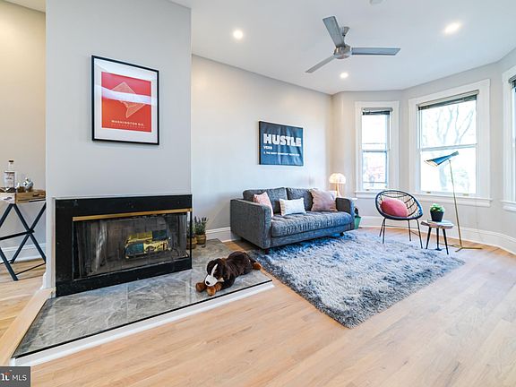 Located in Capitol Hill, 613 Elliott St NE is 3 bedroom, 1.5 bath Victorian row home with a sunny, beautifully landscaped backyard. At approximately 1,500 square feet, this must-be-seen home is situated on a charming, quiet street mere blocks to bustling H Street Corridor. Bright and inviting throughout, this home is an entertainer's dream that retains the character and charm Capitol Hill is known for whilst brilliantly updated it with an airy, open, and contemporary design aesthetic. The main level features exceptional solid oak hardwood floors, a half bath, 10'+ high ceilings, a wood burning fireplace with newly installed custom marble hearth, and all new LED recessed lighting throughout. The extra large gourmet kitchen features a Viking gas stove and range hood, extra large GE Profile refrigerator with built-in filtered drinking water dispenser, Thermador dishwasher, granite countertops, and tons of cabinet and storage options! The second floor features a large skylight, a brand new bathroom, an extra large master bedroom, and two more generously sized bedrooms with incredible closet space. Special care was taken to maximize storage with newly designed built-out closets, each featuring upper storage with tons of cubic feet! Must be seen - unoccupied and clean as a whistle!