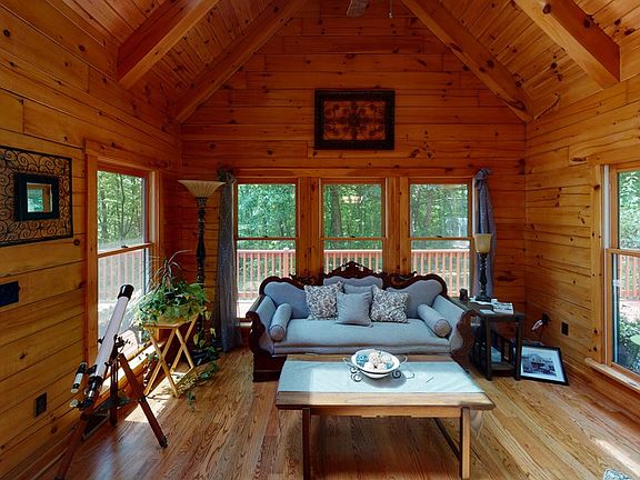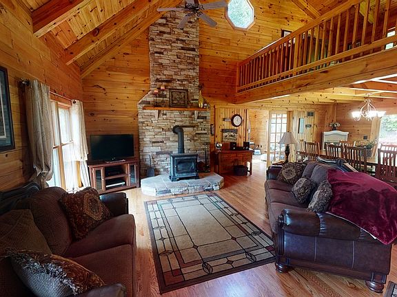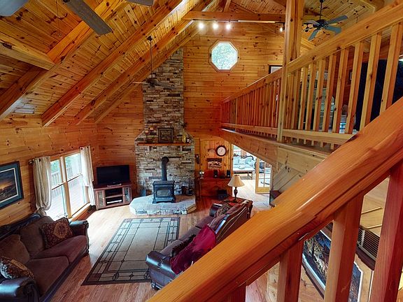 This beautiful log home on 53+ acres absolutely defies description!! Are you looking for privacy, your own hunting paradise, a place for hiking and four wheelers? It is all here and mins from Rte 322! The home features a custom Heirloom Kitchen w/ Elmira Stove Works appliances, lg open LR w/stone hearth/wood stove to make winter evenings cozy, dining room for get togethers, a cheery sunroom for reading & relaxing, 1st floor bedrm & laundry for convenience. Loft offers room for the office/workout - bonus room. Level 2 Owner's suite with walk-in closet, jetted tub. Oh there is more, lower level family room with 52 inch TV/ surround sound to watch the game or your favorite movie, and a private bedroom and bath on this level. It's awesome!