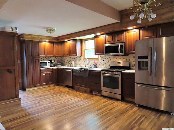 ENJOY SMALL TOWN LIVING IN THIS AFFORDABLE HOME! HUGE CORNER LOT! YOU WILL LOVE THE GARAGE SPACE, Large 2 stall, plus a single stall and a shed that was $6,000 when new! Welcoming kitchen with newer cabinetry, appliances included, gorgeous farmhouse sink, pantry and more! Family room or could be and additional bedroom with slider to deck for summer barbecues! Living room with brick fireplace for cozy evenings at home! Flooring and subfloor recently replaced. Spacious room sizes! Some newer woodwork around windows in bedrooms with newer closet doors and hardware. Lower level family room ~ pool table included! 2008 Cub Cadet riding lawn mower included. Add some touches to make it your own Call today and make this YOUR new HOME! :)
