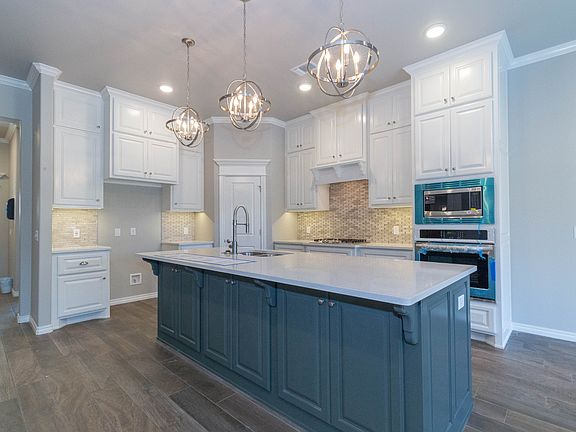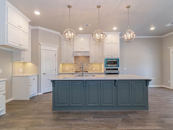 The Shiloh Half Bath plan is 2295 sq ft of living space (including 295 sq ft of outdoor living space with wood burning fireplace and TV hookups) that has 4 bedrooms, 2.5 bathrooms, & 3 car garage with storm shelter installed for your safety. Fully sodded yards with in ground sprinkler system & landscaped front flower beds. Whole house has custom all wood cabinetry! Upgraded stainless steel appliances that include a built in gas cooktop, electric oven, microwave, & dishwasher installed in the island. Upgraded pendant lighting and hardware in home. Stacked stone surround gas fireplace in living room with large windows on either side to let in natural light. Wood look tile in entry, living, kitchen, dining, utility and hallways. Master suite includes tray ceiling with uplighting, spacious walk in closets (2 closets so no sharing required), bathroom has a corner jetta whirlpool tub, dual vanities, & walk in shower. Other included amenities include, Rinnai Tankless Hot Water, solar-boards, air filtration, & fresh air ventilation. 1 year in-house builders warranty. HERS Rating average 47.