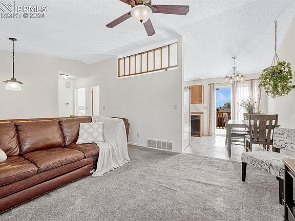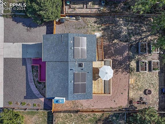 Nestled in Fountain's sought-after Wild Oak Farms community, this charming 3-bedroom, 1.5-bath home seamlessly blends modern efficiency with inviting outdoor spaces. With two expansive decks—a welcoming front deck and a massive back deck—you'll have ample room to relax and soak up the Colorado sunshine. The home’s large windows flood the interior with natural light, complementing its many energy-saving features, including paid-off solar panels, a tankless water heater, and a full-house water filtration system with reverse osmosis. Upstairs, you'll find two comfortable bedrooms, a full bath, and a spacious living room that connects to the dining area. The dining room opens to a well-equipped kitchen and leads directly to the oversized back deck, ideal for entertaining or outdoor dining. Downstairs offers even more living space with a cozy family room with a wood stove, a guest bedroom, and a convenient half bath with a washer and dryer. You’ll also enjoy direct access to the attached 1-car garage. Conveniently located near Fort Carson, a large community park, shopping, and schools, this home provides easy access to everything you need for comfortable living.