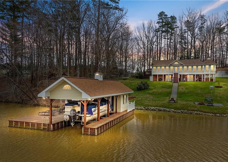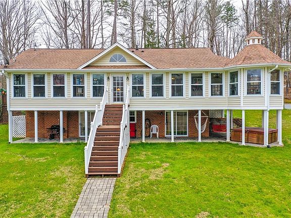 LOOKING FOR YOUR HAPPY PLACE? This is it! Located on HYCO LAKE, this home has everything you need to enjoy LAKELIFE! Enjoy relaxing or dining in the spectacular sunroom with VIEWS! VIEWS! VIEWS! Great house for entertaining with plenty of room for guests and family. Outside enjoy the HOT TUB, easy walk to the water, and the BOATHOUSE! Storage Building! Circular driveway with plenty of parking!