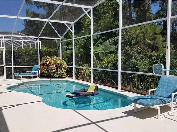 Secluded in the quiet part of the neighborhood and bordered by a lush conservation outlook beyond the pool, this property has been cherished by the out of state sellers for over 17years. It is located just a short distance to the community pool and recreation area and the boat dock, as well as to the Polo Park golf clubhouse. Always well maintained with a newer; roof, resurfaced pool, pool heater, all bedroom carpets, water heater and pool pump. The pool area is private, surrounded by a mature hedge on the sides. The extended covered Lanai is surrounded by oversized sliding glass doors from the great room and master bedroom. Enjoy the prewired surround sound mounted and recessed speakers inside and outside. The large semi private eat in kitchen is light and bright with a breakfast counter that connects it to the great room. Just walk in the front door and you will see that everywhere you look this property will impress you with great features all around.