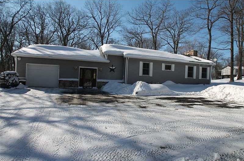 Beautiful flat treed lot. Very nice home with cathedral ceiling in guest room. Stone fireplace runs to top of cathedral ceiling. Basment under main living area. Large kitchen with sit down peninsula. Paved driveway, master suite with huge walk-in and full bath. Property backs to huge amount of acreage owned by Rolling Rock. Blower on fireplace.