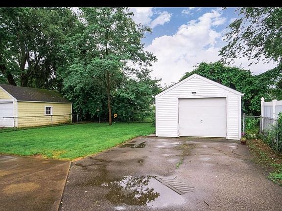 Backyard includes a patio and privacy fence with a small flat backyard. Single oversized garage.