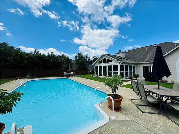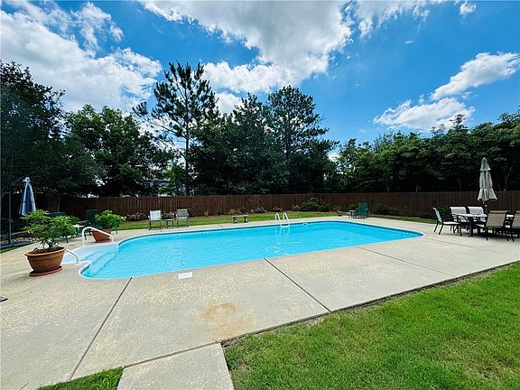 A backyard oasis within the Auburn “loop”! Featuring a stunning salt water swimming pool, this home checks all the boxes. Relax and entertain in the lovely sun room complete with sky lights. Spacious great room offers a gas fireplace and tall, vaulted ceilings. Dining room overlooks the lush front yard, and flows easily into the kitchen which houses plenty of cabinetry and stainless steel appliances including stove with dual gas burner with electric oven convection. Additional seating can be found at the bar and the breakfast nook. The split floor plan provides privacy to the large primary bedroom and the en suite showcases a walk in shower with seating, soaking tub, and walk in closet. Two other sizable bedrooms on the opposite side of the home are perfect for families or guests. Fresh paint and new carpet! And don't miss the 2 Toomer's Oak trees in the front yard! Separately metered irrigation includes front and back yard + flower beds.