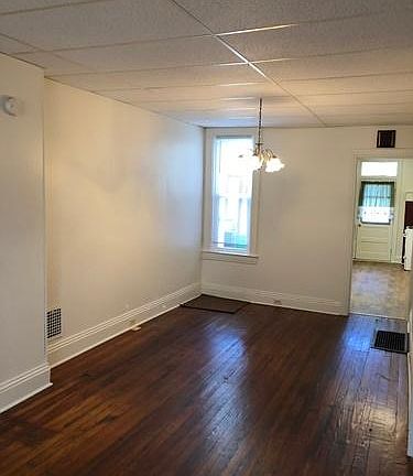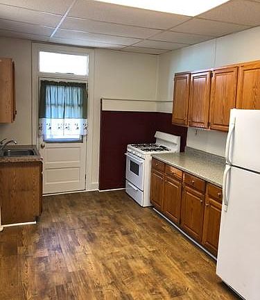 5 bedroom home with 1 full bath (shower only). Eat-in kitchen with stove and refrigerator. Hardwood floors in living room and dining room. Unfinished basement for storage with washer/dryer hookups. Fenced in backyard with shed. No pets. No smoking indoors. Tenant is responsible for all utilities
