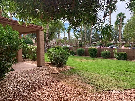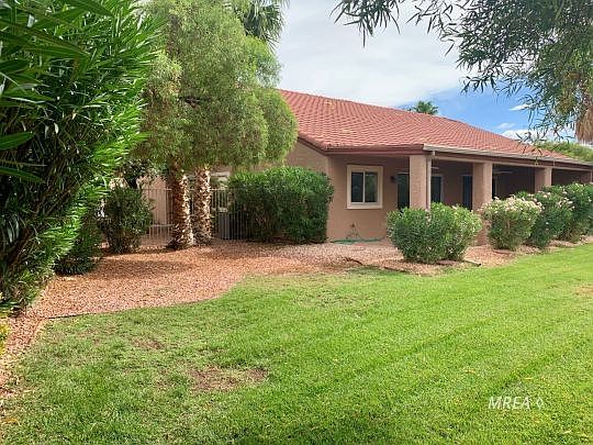 This FULLY FURNISHED TURN KEY town home is located on a spacious home site in Sunset Greens, one of Mesquite's most sought after golf course communities. From the gated entrance to the lush landscaping, the walkways and spacious parks, to the pools and spas and RV/boat parking, this neighborhood is ideal and maintenance free. This town home sits in a quaint cul-de-sac and is right around the corner from the community swimming pool and spa. Enjoy gorgeous southern mountain views from the back of this town home and towering Palm Trees. The orientation is desirable and the oversize yard is private and fully fenced. The home features two large master suites on opposite ends of the home. The kitchen has a window over the sink highlighting the scenery and stainless steel appliances. The carpet is fairly new and there is tile in the traffic areas. The ceilings are vaulted and the paint tones are neutral. Other features include ceiling fans, refrigerator, washer and dryer and window coverings. The entire HVAC system was replaced 2 years ago. Move right in! Home ownership in Sunset Greens includes discounts on golf at the Casa Blanca Golf Course and Casa Blanca restaurants and shops.