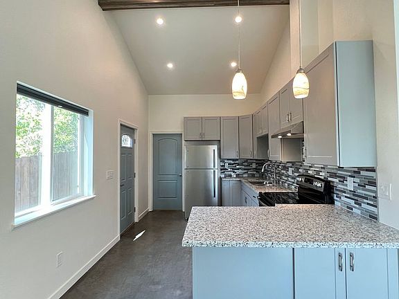Great Brand New Home close to Downtown Benicia. Beautifully build with high ceilings and energy efficient updates. Sealed Concrete flooring throughout property. 2 closets in the bedroom. Remote ceiling fan. Bathroom has 2 entry doors so you can get to it easily from kitchen/living room or bedroom. Shower only. Stackable washer and dryer. Remote controlled heat and air conditioning. New Triple pane windows with screens and window coverings. Small fenced in patio. Water/Sewer/Trash paid by landlord. 1 car assigned off street parking in front of property with electric hook up. All Electric - Solar. Small pet (1) considered with pet screener application. Renters Insurance Required. Non Smoking Property. Tenant breaking her lease.