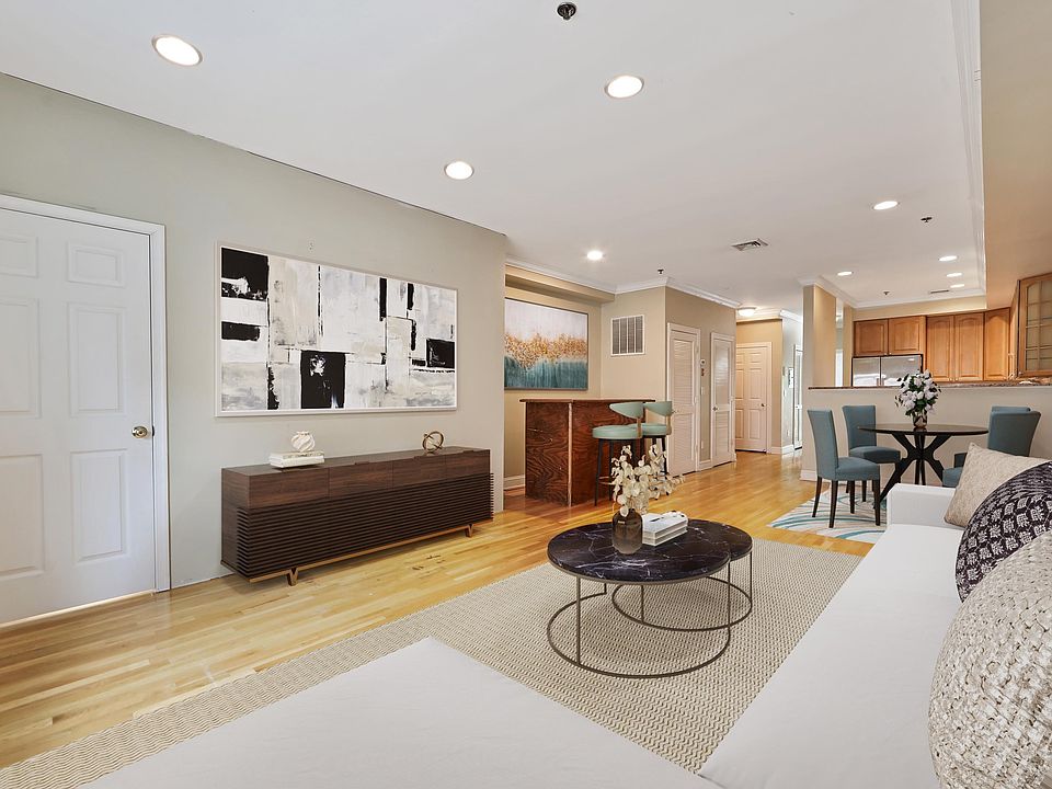 Welcome to residence 1 located at 613 Monroe Street. Perched high above street level, this incredible floor through apartment has 1,324 SQFT of interior living space with hardwood floors, tons of closet space, central air conditioning and in-unit washer/dryer. Originally designed as a 2 bedroom, 2 bathroom home, the apartment is currently configured with a generously sized home office or 3rd bedroom. The partially open kitchen features granite countertops, an abundance of cabinets and a wonderful dining bar. The primary bedroom features a walk-in closet and nicely appointment ensuite with both the primary and secondary bedrooms easily accommodating king size beds with ceiling fans and glass sliding doors leading to the homes oversized private patio oasis. The outdoor space comes complete with a pergola, hot tub and plenty of space for a BBQ, outdoor furniture and plantings. 613 Monroe Street offers a dedicated garage parking space, additional storage, building outdoor common area and is located in close proximity to the light rail and food market. As an added bonus, apartment 1 has a strong history of excellent rental income and an attractive CAP rate making this home the ideal investment property.