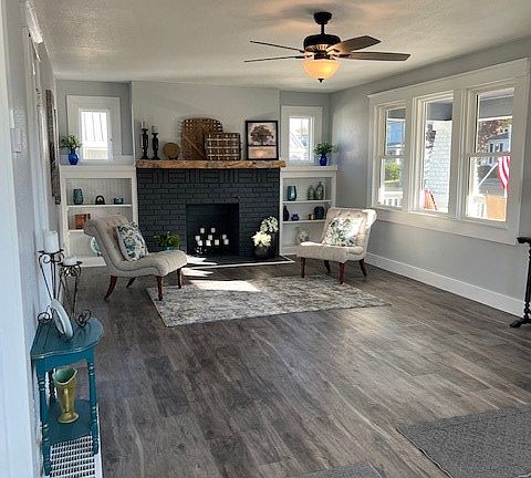 Be ready to FALL in love with this charming bungalow. Big inviting front porch, open floor plan, newly renovated 2-bedroom, 2-bathroom home. Kitchen features white cabinetry and brand new appliances. This move-in ready home has everything you need - new roof, guttering, siding, windows, heating/cooling, a total remodel. COME TAKE A LOOK!