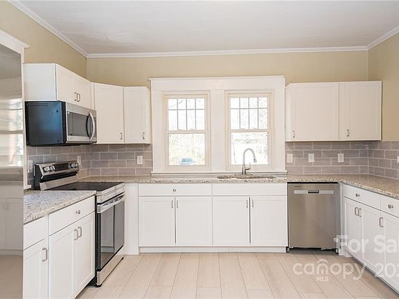 This charming home has tons of character and is located in the quaint small town of Landis.The classic wrap around front porch welcomes you as you walk into this remodeled 3 bedroom 2 bath home. Once inside you'll be impressed with all the space and updates this home has to offer. Beautifully refinished hardwood floors, custom tile showers, updated fixtures and lighting throughout. The kitchen boasts new stainless steel appliances, granite countertops, and plenty of cabinets and space for the chef at heart. The large laundry/mud room has it's own laundry sink. The primary bedroom is spacious and is located on the main level. There is plenty of room for entertaining in the dining room, living area or den. Upstairs you'll find two additional bedrooms and an office or flex space. Large 1/2 acre lot with one car carport and a one car detached garage with work area for the car enthusiast.