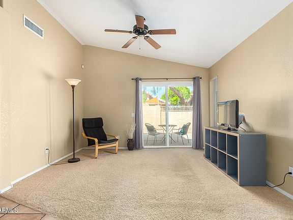 A delightful residence nestled in an idyllic neighborhood. Step inside to a spacious great room layout, seamlessly connecting to a nice backyard and 2 car garage. The kitchen is open to the great room, and has a new range, microwave and refrigerator. Throughout the home, recessed lighting, complemented by newly installed fans and a patio door, enhancing comfort and style. The air conditioning unit, replaced in 2020, and sun screens contribute to a consistently cool interior. Situated in one of the most pedestrian-friendly areas in town, residents can walk to Desert Breeze Park, renowned for its tranquil lake, playgrounds, and charming charming train rides. Additionally, esteemed schools Kyrene de las Brisas, Kyrene Aprende Middle, and Corona Del Sol High are within walking distance.