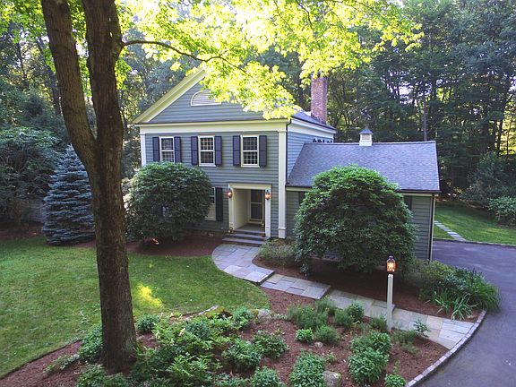 4 Bedroom Center Hall Colonial by iconic Wilton builder, Charles Cornell. This home exudes quality construction and comfortable Fairfield County living! Natural light suffuses the inside from large windows. And the grounds of this lovely and level property include a bluestone courtyard with magical playhouse and fertile garden. Walk to Weir Farm National Park with its extensive network of picturesque walk/run/bike/ski trails, educational programs and camps for children. Convenient Location is Close to the main Wilton schools campus and short drive to Town Center, popular Market, eateries and 2 Metro North Stations. Huge, well-placed Eat-In Kitchen with newer appliances boasts a Walk-In Pantry/Laundry and flows seamlessly to the Formal Dining Room. Massive Living Room with wall of windows overlooks signature North Wilton natural setting. Family Room with floor to ceiling built-ins and crackling fireplace opens to surround-windowed custom Solarium. A few steps from Kitchen, on its own level, is a Playroom with a 'built in' capacity for storage and vaulted ceiling with skylight-A wonderful chill space for kids (or adults). Upper level features private Master with generous closets and newer Bath with oversized shower, high end cabinetry and marble counter/flooring. 3 additional sizable Bedrooms and Full Bath with double sinks complete the Bedroom level. Hardwood throughout. Attic storage with clean plywood floor for storage, plus automated attic fan to keep the attic cool in summer. The large shed is drywalled and has electricity for any use imaginable! AUTOMATIC WHOLE HOUSE GENERATOR, NEW BOILER/WATER HEATER, NEWER ROOF. Home exceptionally well maintained.