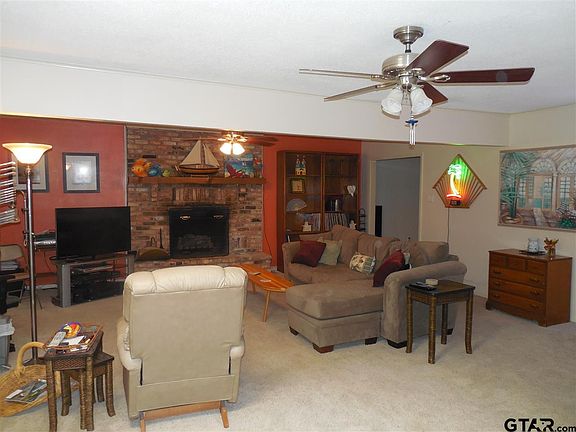 Great 3 bedroom, 2 1/2 bath family home at Hideaway Lake. Lindale schools. Sit back & relax on the long covered front porch or grill up a family dinner on the covered back porch. This home has incredible storage throughout. Split bedroom arrangement. Large master suite has walk in closet & full bath. Two guest bedrooms have new carpet & large closets. Dining room has built-in buffet & could be used as an office. Large comfortable living room w/ fireplace & gas logs. Nice Cook's kitchen has tile counter tops & "L" shaped island w/ lots of seating space. Central air installed new in 2008. Septic & roof were installed in 2007. Sprinkler system in front yard, side yards & flower beds. Hot tub on back porch works great & remains w/ the property. Large fenced back yard. 20’ x 24’ workshop/storage building with roll up garage door. Would make a great man cave. This home has approx. 2199 sf. according to an appraisal.