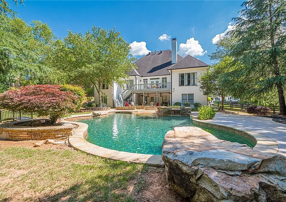 Introducing a beautiful and spacious white brick Milton retreat on a dream 1-acre lot, with a spectacular HEATED GUNITE SALTWATER POOL and spa and enormous and serene backyard. This is a spacious but cozy and well-designed home, with 3 levels, 5 bedrooms, and 5386 square feet of living space. So many features! MASTER ON MAIN, 2-story foyer and great room, large dining room, a SECOND MAIN-LEVEL BEDROOM with en-suite bathroom, plus a front OFFICE with an enormous picture window and vaulted ceilings. Culinary enthusiasts will appreciate the chef's kitchen featuring double ovens, a new gas stove, ducted exhaust vent, island, bar area, 2 pantries, and breakfast nook. The designer exterior colors, front porch, landscaping, solid hardwood floors, high ceilings, and many windows add elegance and sophistication. Upstairs are large bedrooms with a window seat and jack-and-jill bathroom. Every bedroom has a walk-in closet! Relax and entertain in the finished terrace level that includes a media area, game area, wet bar, workout/gaming room, full bath, separate bedroom (stubbed for a 2nd full bath and second washer and dryer hookup), unfinished storage, plus a large, light and bright WORKSHOP with an exterior side door. Just add a kitchenette to convert this level into the perfect IN-LAW SUITE! Step out onto a covered and dry patio, to a beautiful stone firepit and into your backyard oasis. The large 35,000-gallon PebbleTec pool has both a deep end with a jumping stone and an easy-entry walk-in shallow zone by the spa. Pool features are controlled through an app for convenience or manually. Pick your own apples, peaches, blueberries, mint, and peppermint from your backyard, enclosed with a beautiful black wooden equestrian-style fence! The sellers have made a long list of improvements: exterior repairs and painting, new widened level driveway and sidewalk, new deck with under-decking ceiling to keep the patio dry, custom closet systems, upgraded kitchen S/S appliances, resurfaced spa, new pool equipment, landscape lighting, improved gutter/drainage systems, and more. Milton is a prestigious city in north Atlanta and Potterstone is quite an active and social neighborhood! Meet neighbors, celebrate seasons and holidays, and enjoy events and community amenities like the pool, tennis and pickleball courts with teams, a pavilion with fireplace, and playground. All of this in top-rated and highly desired school districts: Summit Hill ES, Hopewell MS, and Cambridge HS. TEN MINUTES TO DOWNTOWN ALPHARETTA AND MILTON, easy access to schools, parks, restaurants, large and small retail, GA 400, Avalon, medical centers, wineries, live music, equestrian farms, and more. Don’t miss this opportunity to make 613 Northumberland Dr. your forever home. Schedule a showing today and settle into Milton living at its finest!