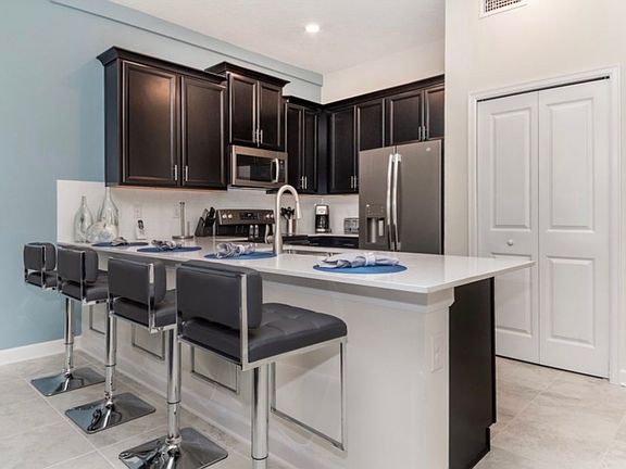 Incredible fully furnished ground floor 2 Bedroom /2 Bath condo w/ garage. This condo is fully furnished with a king size bed in the master suite and a bunk bed w/trundle in the other bedroom. It includes a washer / dryer and kitchen appliances. Enjoy resort style living in the best rental area near the attractions with shopping and entertainment minutes away in the prestigious Champions Gate town, just minutes away from I-4. Located on the Omni Resort site which includes two top ranked golf courses. Move in to Champions Gate and get ready to enjoy all of the amenities and recreation facilities the community offers. Rent includes Trash collection, landscaping and exterior pest control. The home is equip with LED lighting and energy efficient air conditioning that will help keep your electric bill to a minimum. Friendly and responsive Property management service included truly making this rental effortless! Call or text for showings: Same Day Application Processing!$90 application fee