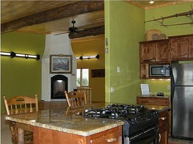 Southwestern style (4 bedroom 3 1/2 bath) stunning home on the golf course. Stucco exterior, concrete circular drive, automatic sprinklers, shade trees, two furnaces, central and forced air, walk-out basement with patio, upper deck with grand views. Attached oversized 2-car heated garage with shop area. Casita is a living space with separate outside entrance. Elevator and pool table included.