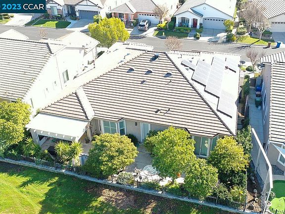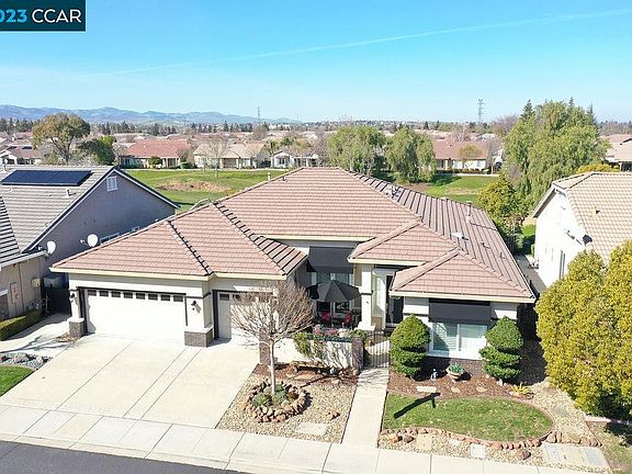 BACK ON THE MARKET - Model “The Cascade” On the golf course. Everything is tastefully remodeled in Summerset 4 a senior community. The SOLAR is owned, hardwood & marble flooring plus Plantation Shutters throughout, crown molding finished off w/wood trimmed coffered ceilings. Exquisite wood panels & trim throughout. Custom lighting & fans throughout. The Family room has raised hearth gas fireplace & custom designed TV area. Kitchen has Granite counters, espresso machine, double ovens, gas stove, refrigerator & 2 cold drawers & pantry. Everything is custom! Formal dining w/stone accent walls. A guest suite w/marble bathroom. Custom built-in cabinets throughout. A full wet bar! An Arts & Craft room with desk/cabinets. The office has built-in shelving & room for a pull-out couch. French interior doors! The primary bedroom with an incredible primary bathroom, his & her separate sinks & a vanity for her with all-custom granite & cabinetry. Large walk-in closet. Front courtyard, backyard with built-in barbecue, patio covers, fire pit (negotiable), waterfall, views of the golf course & Mt. Diablo, fruit trees. HOA $165 monthly includes, security gates, pool, spa, gym, 2 club houses, tennis 7 & activities.