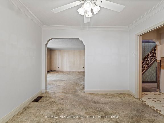 Incredible potential for this diamond in the rough! Discover the perfect blend of country charm and modern potential in this captivating 4+1 bedroom, 2 bathroom farmhouse nestled in the heart of Niagara-on-the-Lake. This two-storey detached home spans over 2290 square feet, sitting on a large lot with the added privacy of no rear neighbours and backing onto a serene ravine. Step inside to find classic design elements thoughtfully preserved throughout, offering buyers the unique opportunity to embrace timeless character or customize with their own personal updates. The spacious living room welcomes you with abundant natural light streaming through large windows and centers around a stunning stone fireplace perfect for cozy evenings. The heart of the home features a generous kitchen brimming with potential, seamlessly connected to a separate formal dining room ideal for entertaining. The main floor's flexibility continues with an additional room that can serve as a den, home office, or extra bedroom to suit your lifestyle needs. A convenient two-piece powder room completes the main level. Upstairs, four spacious bedrooms provide comfortable accommodations with ample closet space, while a four-piece bathroom serves the second floor. This exceptional property offers the rare opportunity to enjoy peaceful rural living while remaining connected to urban conveniences, all within the prestigious and picturesque community of Niagara-on-the-Lake. Perfect for those seeking authentic country living or an exciting renovation project with endless possibilities.