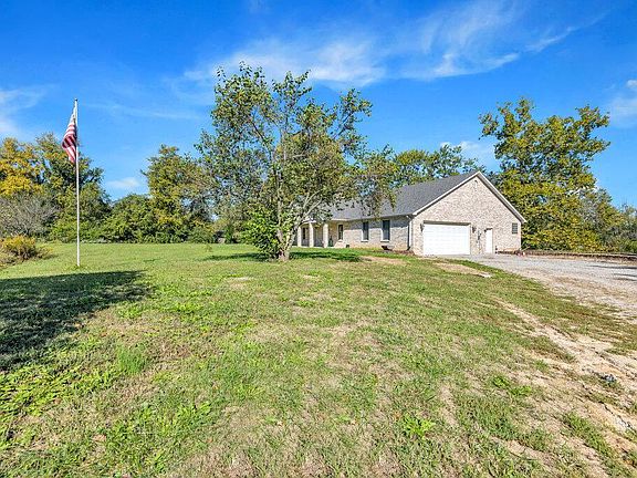 ALL BRICK 5 Bed/4 Bath ATRIUM RANCH on 2.76 Acres LAKEFRONT lot. Rural setting nestled between Millstadt & Belleville. OPEN CONCEPT w/hardwood floors, vaulted ceiling, brick accent wall & gas fireplace in the primary living spaces. Well-appointed kitchen w/built in appliances & breakfast bar. French doors to expansive covered full-length deck running. True master suite w/private deck access, large bedchamber, walk in closet, dual vanity bath w/separate shower & soaking tub. Built by a mason, the brickwork speaks for itself. Atrium wall of windows accentuate the custom staircase. Split floor plan includes two additional large bedrooms, hall bath with tub/shower combo & additional 1.2 bath. Lower level is made for entertaining w/open concept family, rec, & more. Back bar w/mini fridge ready for your GAME DAY BUFFETS. 2 more beds on lower level, one set up as office/craft/gym/flex space plus full bath w/shower complete the lower level. Walk out to lower-level patio and lake.