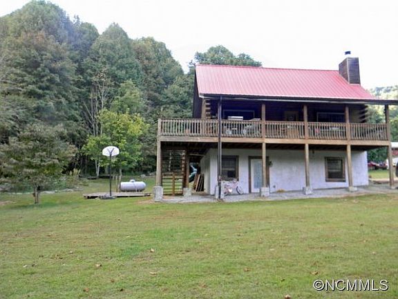 -Log cabin on flat 1.5 acres with stream, on 2 lots. Covered front porch and back deck. 2 bedroom/3 bath, hardwood and carpet.