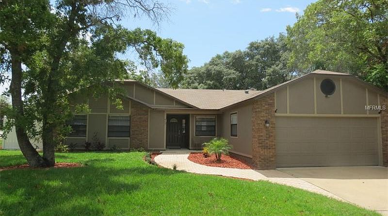Gorgeous 4/2 split plan in desirable Forest Oaks, a well-established quiet neighborhood with only one entrance. Local park just down the street; convenient to theme parks, shopping and major roads. This home is MOVE-IN READY, completely remodeled with neutral tones, modern lighting and fans throughout. Beautiful pergo flooring flows throughout the home, with ceramic tile in wet areas. Kitchen has brand new Shaker style wood cabinets, granite counters, SS appliances, two pantries, and bright eat-in area. NEW A/C!!! Home features 5" baseboards, knockdown texture on vaulted ceilings, granite counters in bathrooms, entirely freshly painted inside and out. 4th bedroom/office/den - take your pick - room opens to living area with french doors. More french doors lead to extra large fenced back yard with storage shed (keep your garage neat and tidy), deck and room for a swimming pool! Garage has pull-down ladder for attic storage and side door opens to fenced yard. This one won't last long - too good to pass up!
