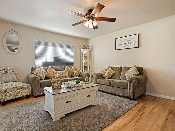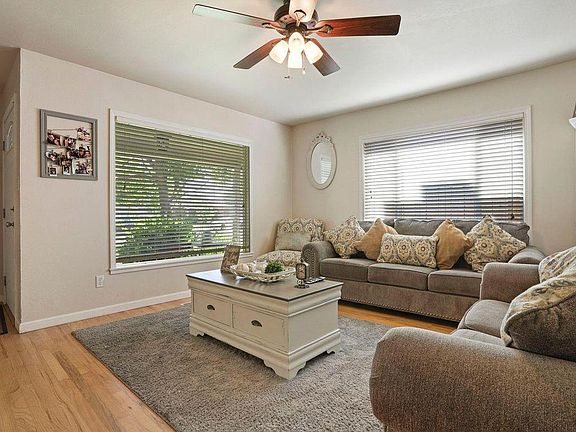 Bring your fussiest buyers! The appeal starts at the curb and throughout with designer colors, beautifully redone hardwood floors, a large and beautifully updated kitchen with Ikea wood counters and stainless steel gas stove! An inside laundry room is handily located off the kitchen with a 1/2 bath with easy access to the exterior. The central heat and air conditioning are also updated. The large and well-kept backyard with plenty of room for the kids to play or the dogs to run, features an expansive concrete patio, a gas fire-pit and several fruit trees including apricot, orange, cherry, plum and nectarine! There's also a dog run with doghouse and a storage shed! The garage walls are neatly finished and there's storage space in the rafters.