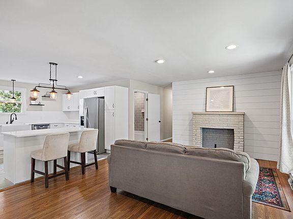 The open kitchen offers ample storage and plenty of counter space for cooking, along with a fantastic island for entertaining. Whether you're preparing a casual meal or hosting friends and family, this space is both functional and stylish.
