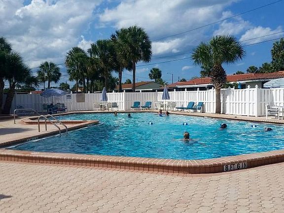 Light and Bright Ocean Village Villa with an amazing private community pool, tennis, shuffle board, club house and steps to the BEACH! This Beachy community has a LOW $80 per month maintenance fee (paid quarterly) and covers all of the above mentioned amenities PLUS complete lawn care...Cutting, edging, pest control, watering...Power washing the tile roofs and outside paint! Maintenance FREE lifestyle! Wow! This Villa has it's own separate water meter, A/C 2009, updated kitchen cabinets, a large open back patio, tile throughout the entire Villa and has room for a carport or a garage. You own the land here too! Wonderful cross breezes from the ocean and the river. Just sit out back or on your covered front porch and enjoy! Price firm