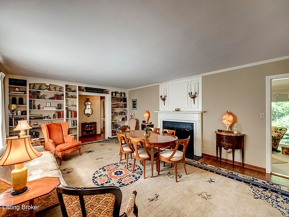 Nestled in a lush, garden-like setting in one of Louisville's great smaller cities, this delightful mid-century brick ranch offers timeless appeal and a rare opportunity. Built in 1951 and available for the first time in over 40 years, this 3-bedroom, 2-bath home is brimming with character, thoughtful updates, and vintage charm. Original hardwood floors, custom trim work, and built-in features run throughout the home. The spacious living room showcases cantilevered bookshelves, a wood-burning fireplace with an elegant mantle, and abundant natural light. Adjacent, the formal dining room—currently styled as a cozy sitting room—features a classic chair rail and wallpaper detailing. The kitchen is both functional and stylish, with Corian countertops, generous cabinetry, terra cotta-toned flooring, and appliances including a JennAir cooktop with hood, GE fridge, Bosch dishwasher, and a wall oven with convection and air fryer capabilities. The step-down sunroom is a showstopper, boasting a full wall of windows and updated sliders that frame serene views of the landscaped backyardmaking it the perfect all-seasons retreat. The primary suite offers hardwood floors, new Norman custom blinds, and a surprisingly spacious walk-in closet. Its en suite bath includes a porcelain tile floor, ceramic sink, updated commode, linen storage and new Norman custom blind. Two additional bedrooms also feature hardwood flooring and ample closet space, while the hall bath includes a raised pedestal sink, tiled floor, tub/shower combo, linen closet and new Norman custom blind. The large unfinished basement offers endless storage with shelving that remains, a nostalgic utility tub, newer windows, sump pump, and included washer/dryer. A partial crawl space includes a vapor barrier and blown-in foam insulation for energy efficiency. Outdoors, you'll find a horticulturist's dream with mature trees, curated shrubs, and striking hardscaping that creates a peaceful, private retreat. The detached 2-car garage offers underground electric service, extra storage, and an opener on the right-side door. Solar panels installed on the house by SunWind Power Inc. add eco-conscious value and are metered separately. Electric service and AT&T phone and fiberoptic cable to the house are all underground. This lovingly maintained Windy Hills gem offers a rare chance to own a property with modern comfort and irresistible charm. Don't miss it!