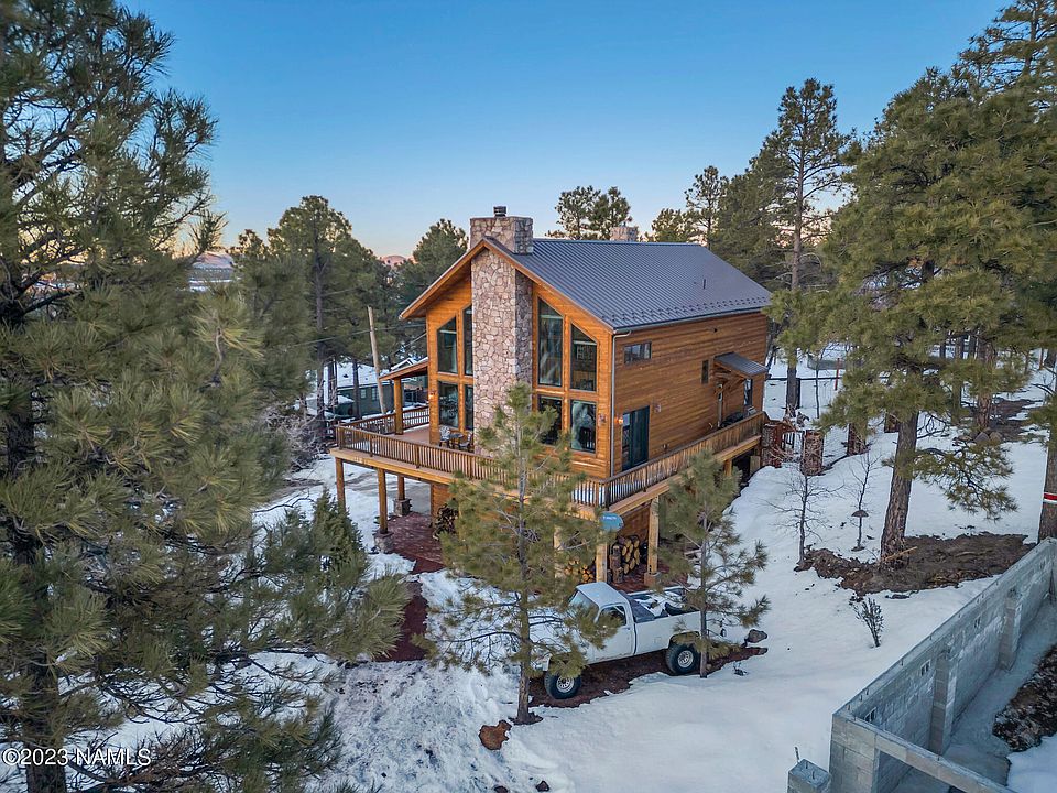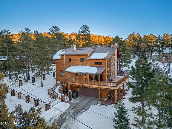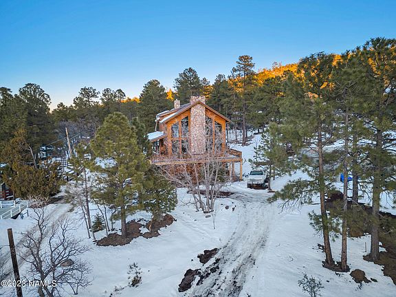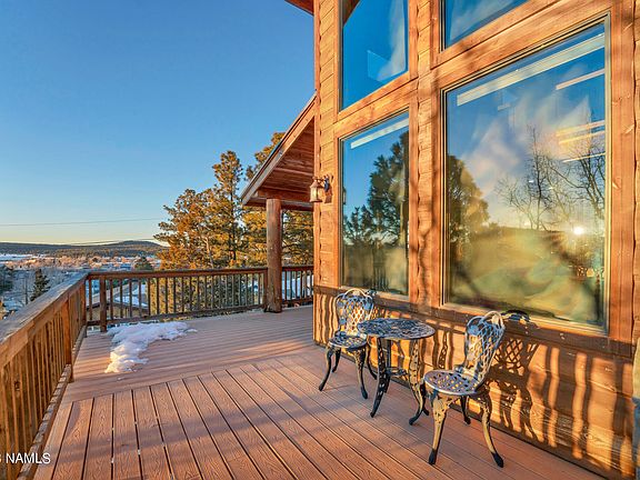 This 3-bed, 2-bath, beautiful, tri-level, custom, log-style home sits on a hillside above the town of Williams. The home has views of town, mountains, sunsets and more.