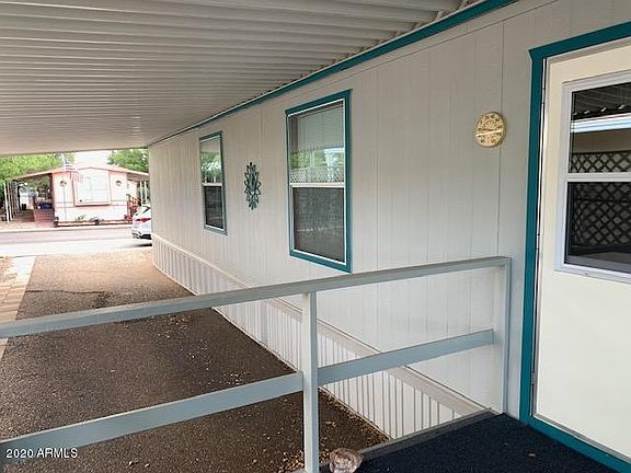 Home is a well maintained, cute single wide manufactured home, sits on leased land within a park, 2 bedrooms, 2 baths, master bath has soaking tub and separate walk in shower, split plan, dishwasher, washer & dryer included, furniture included, deck on front and back, shed, fenced back and side yard, extra wide 2 car carport.