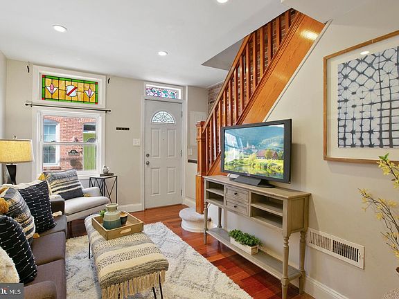 Home in Canton with Brand New Roof, HVAC, Hot Water Heater, and Appliances! This charming home has gleaming cherry hardwood floors, recessed lighting, exposed brick walls, built-ins throughout, glass transom windows, and a dining room sideboard with wine storage. The kitchen has ceramic tile flooring, wood cabinets, stainless steel appliances, a gas stove, granite countertops, under-counter lighting, a pantry, and a door that leads out to a high fenced-in patio for relaxing and entertaining. Upstairs is the primarys spacious bedroom with a vaulted ceiling with fan, a carpeted loft, a second bedroom, and a full bathroom with an oval soaking tub and shower stall. Walking distance from shops, restaurants, Patterson Park, and the waterfront.