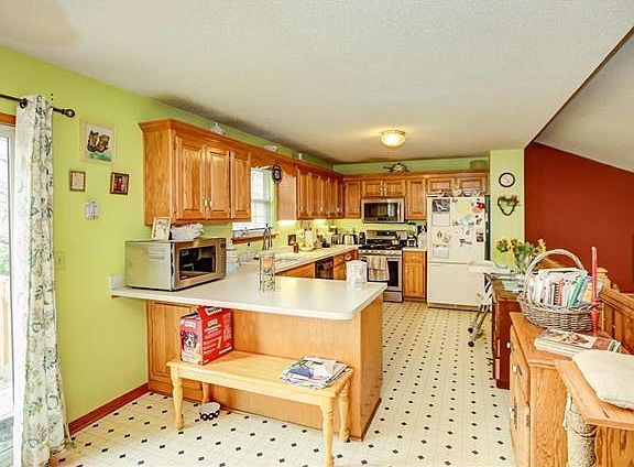 Odessa Gem. Step onto a charming front porch into this California Split. Cathedral ceilings. Lots of cabinets (Ash) space in the large kitchen. Breakfast bar. Deck overlooks beautiful redbuds in the back yard. Three bedrooms. New SS gas stove and built in microwave, new faucet, new hardwoods in Master bedroom, 3rd bedroom and on steps. Newer laminate in hallway, new hot water heater, newer furnace, NEW ROOF, basement rec room. Only 2 blocks from Chestnut Park and close to schools.