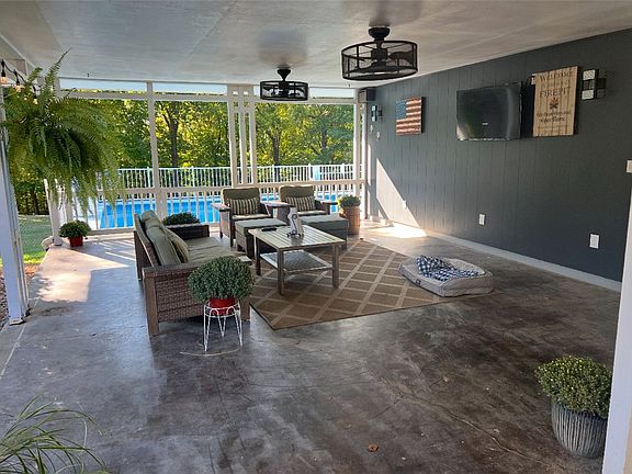 This gorgeous ranch home on a cul-de-sac situated on 3 acres offers gorgeous curb appeal and is move in ready! The home features 1211 square feet with 3 bedrooms and 2 full bathrooms and an attached one car garage and a detached garage. The private oasis in the back yard is a homeowner's dream with a pool and lovely Frank Lloyd Wright inspired back patio, great for entertaining and gorgeous scenic views! Upon entering this home, you find an inviting living room with beautiful accent wall and vinyl plank flooring that overlooks the eat in kitchen. The updated kitchen features stainless steel appliances and dark wooden cabinets with a lovely backsplash and quartz countertops. Down the hall you find three bedrooms and a full bathroom. Downstairs in the full basement is a large living space, laundry and an updated full bathroom. The property has plenty of mature hard wood and fruit bearing trees and a stream that flows through the back of the property.