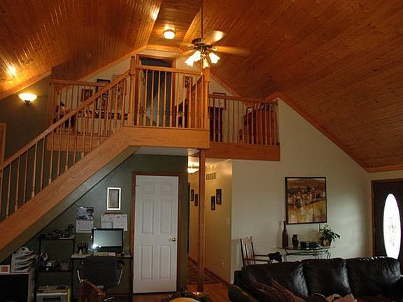 Fine beautifully built home with level lot and shop/garage, and lake. Natural wood finished vaulted ceiling in greatroom adds warmth to the beauty of this quality home.
