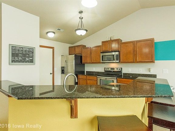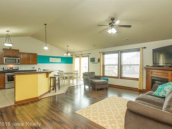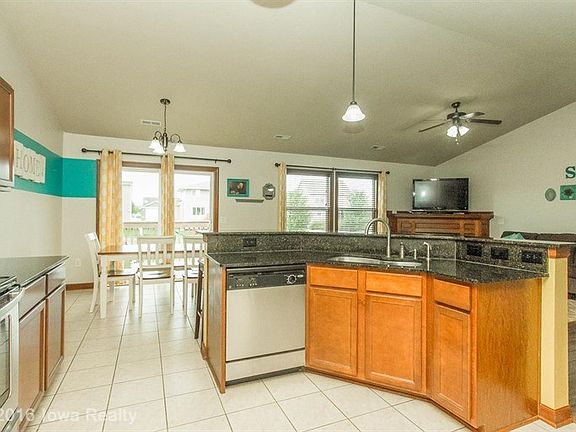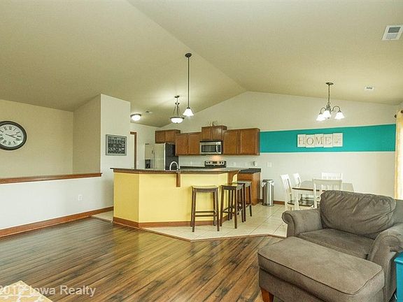 This Grimes ranch open floor plan is a must see! Walk in the front door and find a wide open living room, dining room, & kitchen with beautiful granite countertops & a center island overlook it all. Through the outside deck sliders find a stamped patio & playset perfect for entertaining & children. The main floor hosts 3 bedrooms & 2 baths w/double vanities in the master bath. Enjoy the added convenience of laundry room on the main level. Prepare to be completely wowed by the finishes in the lower level. A spacious bar with bedroom & bath, with a storage room. This home is in a great neighborhood and backs to an open green space. Easy access to Highway 141 and in the Dallas Center-Grimes School District.