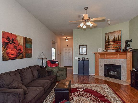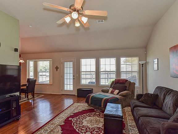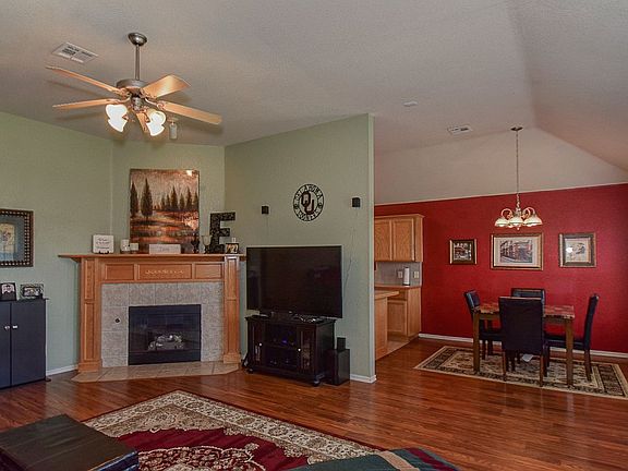 Easy floor plan flows nicely. Open living area with wood flooring, and fireplace. Large Master Bedroom with plenty of closet space. Storm Shelter in garage, extra concrete walkway on both sides of home. Very well taken care of home. A must see!