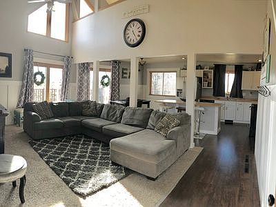 Nice horse property with seperate driveway to back corrals. Partial wire/electric fencing, horse shelter, dog kennel, hitching post, mature trees and yard. Gravel driveway with oversized detacthed 3 car garage. Interior features vaulted ceilings, large balcony with great views, master upstairs. Main level living, dining room, new kitchen, 2 bedrooms and bathroom,loft area that would make a great office area,Upgraded double pane windows that pop out for convenient cleaning, new paint inside and out,new flooring throughout hole house,basement has finished living area & laundry room.