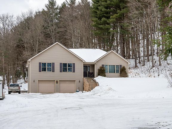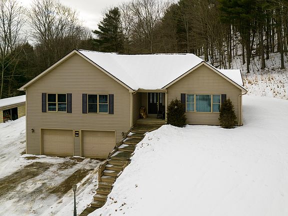 This beautiful, newer ranch home sits on over 50 plus acres of fields and forest, and backs to a private lane surrounded by mature landscaping and trees. First floor has vaulted ceiling and 3 bedrooms. Walk out lower level features in floor radiant heat and could easily add additional living space. The oversized two car garage has in floor radiant heat as well. The property offers recreation
