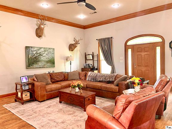 This beautiful and spacious home has too many amenities to list!! Spacious kitchen and living room have an open concept, granite countertops throughout the home, high ceilings, a wood~burning fireplace, back porch area to overlook your horses or other animals, and a huge workshop. It is conveniently located between Squire Creek Country Club and Ruston, and it is also in Choudrant School District. The 6 acres of land has fencing for the current owner's horses, while the 40 x 60 workshop, in addition to having such a large working space, also has two separate rooms on the back side: an office, and the other room that is currently used as a tack room. Call your Realtor for an appointment to view in person..