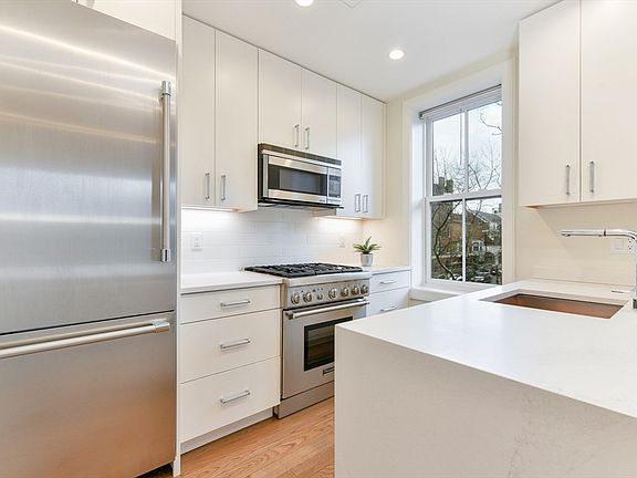 2018 Gut Renovated 2 bed/2bath upper philly duplex w/ private deck in the heart of the South End on highly coveted Montgomery Park. Open concept floor plan features south-facing bow-front windows, built-ins & high ceilings centered around a gas fireplace. Designer chef's kitchen boasts Thermador S/S appliances w/ a breakfast bar & Calacatta Caesarstone counters. Primary BR suite accommodates a king-size bed w/ abundant closet space & en-suite bath w/ oversized shower stall & custom bench. Second queen size BR has large windows that overlooks picturesque park & is adjacent to 2nd designer bath. This home is complete w/ a 22 ft long private deck with sweeping City views, custom hardwood floors throughout, crown moldings, custom built-ins/closets, central a/c, W/D & is pre-wired for Total Home Automation. The buyers of this unique home will be granted keys to exclusive Montgomery Park w/ lush green space. Live moments to SoWa, Copley Square, Newbury Street, restaurant row & Back Bay T