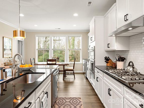 Enjoy unparalleled views of the Charlotte skyline from the ROOFTOP terrace of this gorgeous three story townhome. Just minutes from the bustling city of Charlotte yet tucked away in a charming all brick townhome community in Cotswold. Entry level with convenient drop station, recreational room, and TWO car garage. Open concept main floor seamlessly combines modern living with a spacious feel. Natural light, hardwood floors, and PRIVATE balcony make this space perfect for relaxing/entertaining. Dream kitchen with white cabinets, granite countertops, stainless steel appliances, oversized island ideal for cooking/baking/gathering, AND convenient serving station/wine bar adjacent to dining area. Third level with spacious owner's suite, two secondary bedrooms, full bathroom, and laundry. Fourth level boasts the ROOFTOP terrace with FIREPLACE providing perfect panoramic views of Uptown! Comfort, convenience, and sophistication - all just steps away from the vibrant heart of the city!