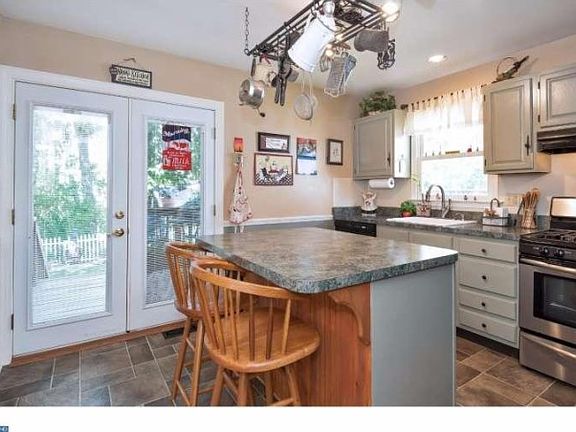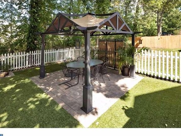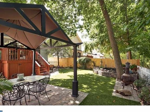 Picture perfect, complete with a picket fence! This home exudes curb appeal and the front porch with pretty Victorian gingerbread woodwork beckons visitors to enjoy relaxing! A Full glass storm door lets in the light! Welcome inside to a lofty foyer opening directly into a light filled and airy open floor plan living and dining rooms, both with easy care Pergo floors. The living room has a gas fireplace and custom blinds. Entertaining will easily spill into a beautiful dining room that sparkles with its crystal chandelier! Your friends and family will truly enjoy gathering around the large central island that was added when the kitchen was recently updated. The chef will find the cabinets and pantry provide plenty of storage and counter space. Other updates are an oversized ceramic sink with a gooseneck faucet, vinyl floors, gas range and a BRAND NEW dishwasher! French doors lead to the deck overlooking a fenced, shaded yard just made for relaxing! The deck has storage underneath and steps to the paver patio and yard that has been finished with a low maintenance artificial "pet friendly" turf! Great for dog owners! A fruit bearing Pear tree is also in the rear yard. Nestled under the trees is a Koi pond and another lovely paver patio with a retractable awning. Back inside is a convenient main level powder room recently remodeled with a beautiful furniture style vanity with marble counter. On the upper level are 3 bedrooms, a laundry room, 2 full baths and pull down stairs for easy attic storage access. The master suite has a large carpeted bedroom with double closets and a full bath with his/hers sinks, a stall shower and tile floors. The 2 additional bedrooms both have Pergo floors and share an undated full bath with tub. But there is even more! The finished basement has an amazing family room with surround sound(just need speakers), recessed lighting, Berber carpet, crown molding and chair rail and a FULL WET BAR with tile floors! This level still has even more space that could be finished adding a playroom in addition to the existing storage and laundry area! This home is move-in ready and also has a NEW sump pump and French drain system, a NEW HVAC system (2012) and Newer double hung windows.Gutter guards, too! No through traffic in this cul-de-sac! The home's location is also convenient for commuting and shopping. No need to look further, this is home!